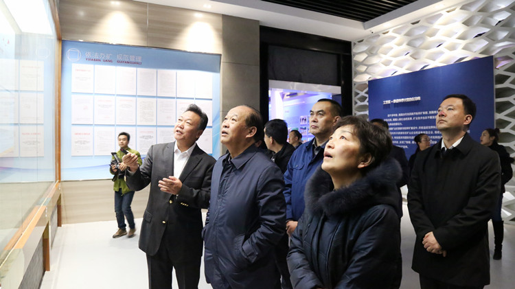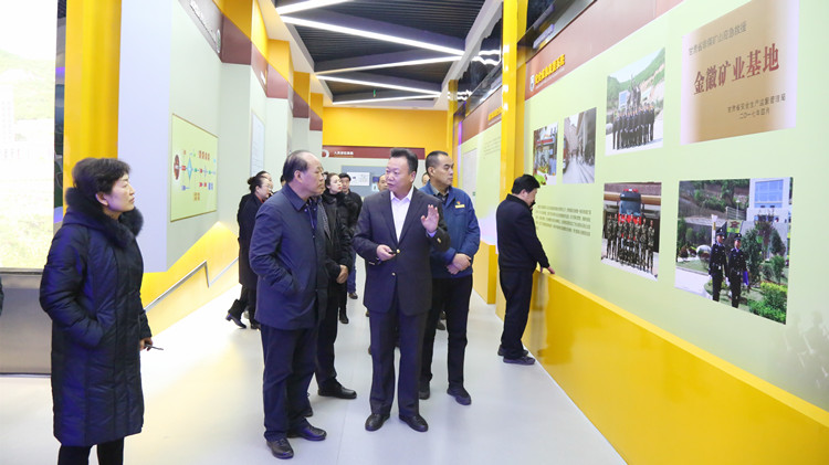 王廳長先后深入科技指揮中心、停機坪、尾礦庫、主平硐口、礦工服務樓等地實地調研。調研中,陪同人員從發展理念、生產經營、資源儲量和企業文化等方面做了全面匯報,通過觀看《筑夢金徽》宣傳片和聽取匯報,王廳長系統了解了金徽股份安全生產情況和綠色礦山建設方面所做的工作后指出,好的發展理念決定著企業的發展命運,金徽企業的發展理念和目標定位一定會引領企業不斷壯大;在實物地質資料巖心二館,王廳長詳細查看標本后說道:金徽股份完整保存的大量探礦巖芯資料,在礦山企業中是非常少見的,從這些巖芯中我們不僅能看到金徽人認認真真做事的企業精神,更加堅定了我們對金徽股份持續發展的信心。今后工作中,我們要繼續支持和幫助金徽股份,同時希望企業要一如既往地做好各方面工作,努力將金徽股份打造成綠色礦山的標桿,為全省礦山企業做出示范。