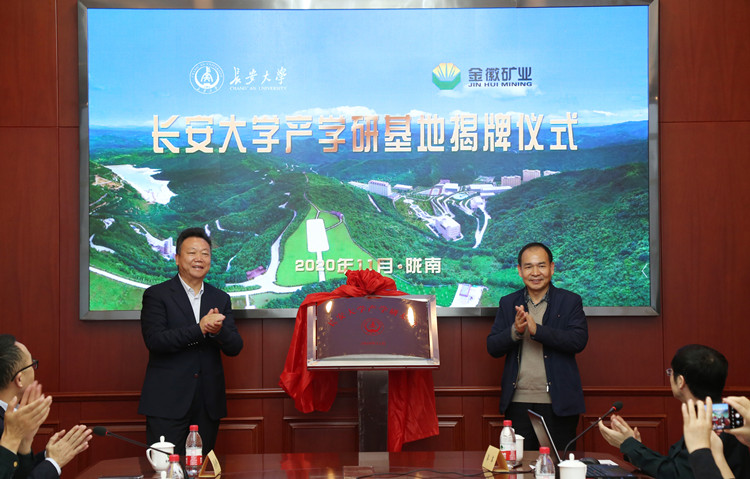 11月11日,長安大學產學研基地揭牌儀式在金徽股份舉行。長安大學地球科學與資源學院院長、教授李榮西和亞特投資集團黨委書記、總裁張世新出席并為長安大學兼職教授和金徽股份專家工作站特聘專家頒發聘書。