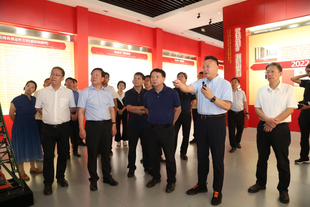 7月11日,全國人大憲法和法律委員會副主任委員王洪祥、法制工作委員會副主任王瑞賀率調(diào)研組蒞臨金徽股份開展《中華人民共和國礦產(chǎn)資源法(修訂草案)》立法調(diào)研,并指導(dǎo)金徽股份綠色礦山建設(shè)工作。